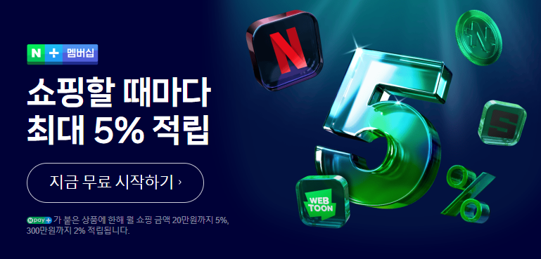 [네이버플러스 멤버십] 쇼핑 최대 5% 적립부터 디지털 콘텐츠 이용권까지!