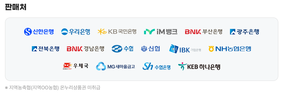 단, 지역농축협에서는 온누리상품권을 취급하지 않습니다.