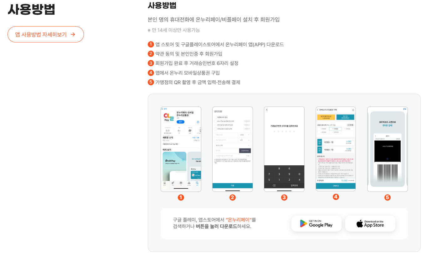 - 구글 플레이스토어 또는 앱스토에서 "온누리상품권" 검색하여 설치합니다.